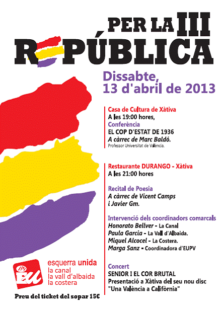 14 de Abril. 12:00 horas. PER UN NOU PROJECTE DE PAIS: III REPÚBLICA.