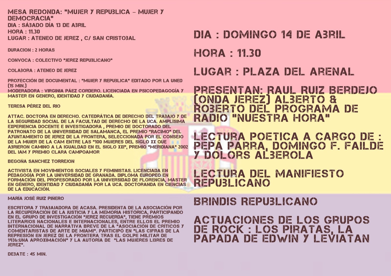 *12, 13 Y 14 de Abril. JORNADAS CULTURALES REPUBLICANAS.