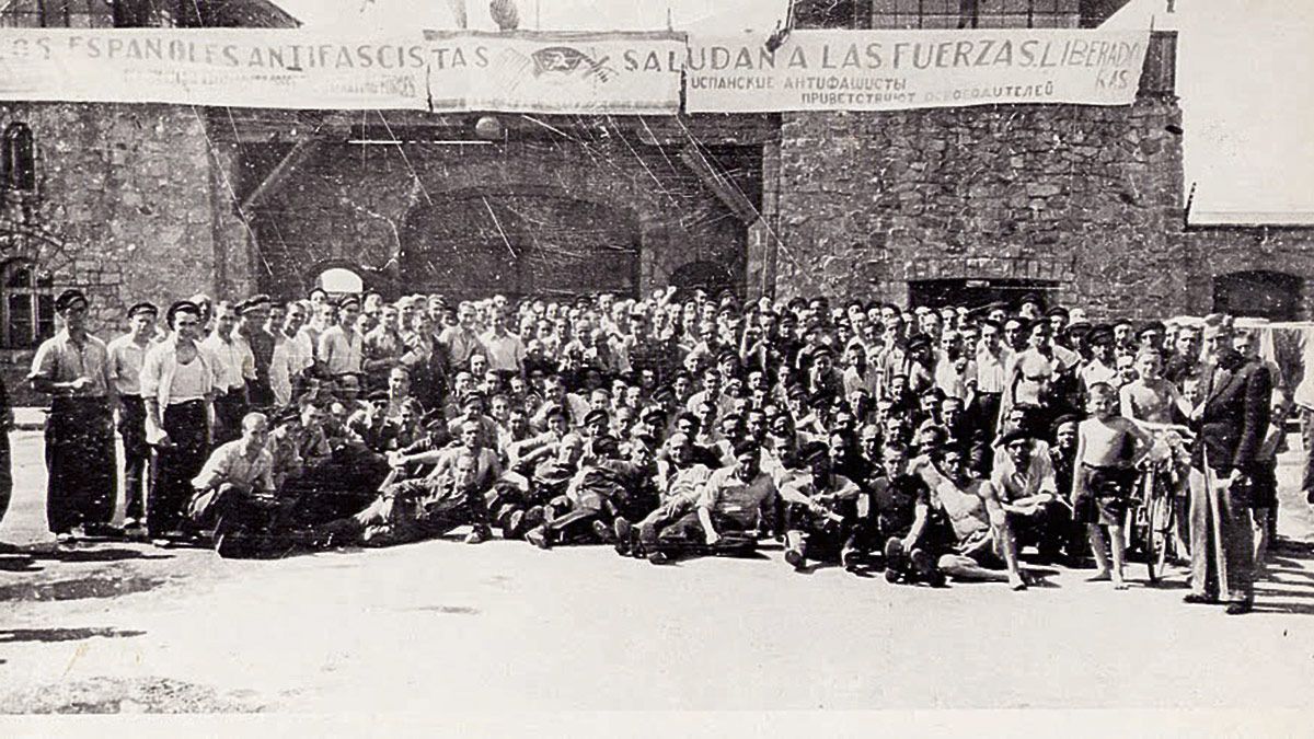 La famosa pancarta con la que los republicanos españoles recibieron a las fuerzas de liberación.