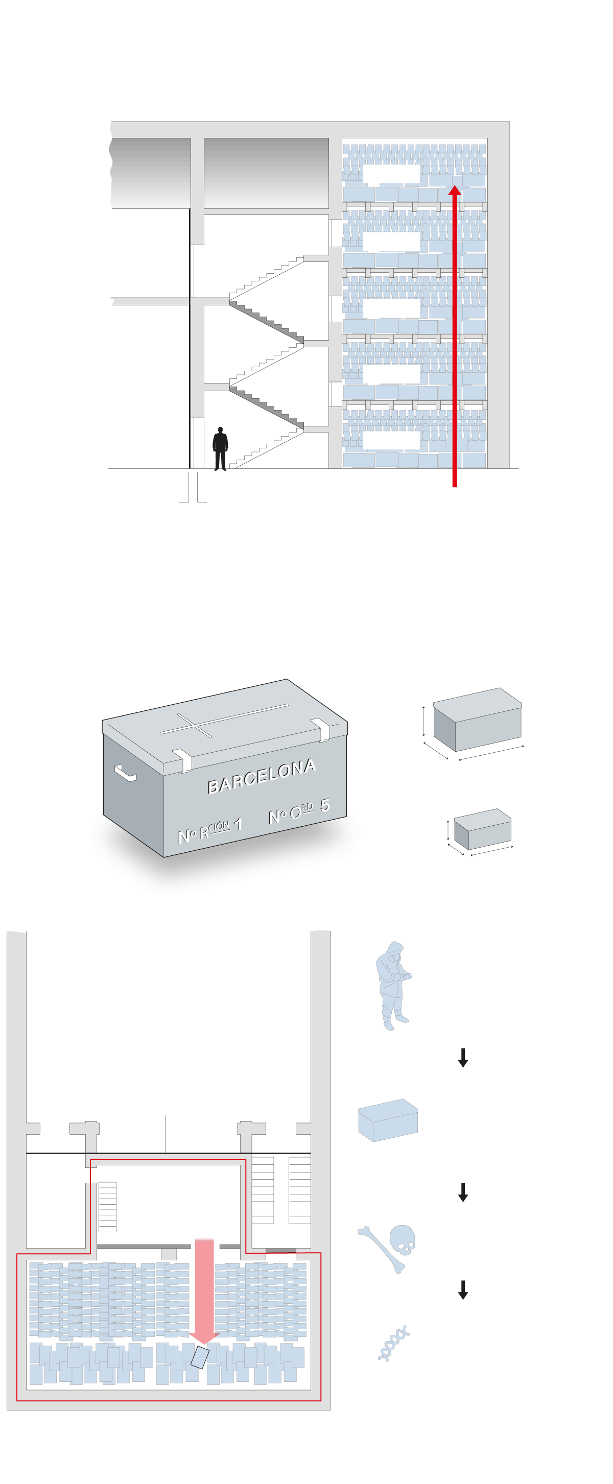 Son cajas de madera con anotaciones sobre los restos que contienen: lugar de origen, número de relación y de orden (permiten su identificación) y en el caso de ser colectivas, el número de personas a las que pertenecen los huesos.