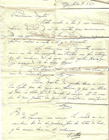 "La carta que conserva mi madre tiene la misma fecha que su... salida de la cárcel, es decir, la última que escribe. En la carta primero cree que le van a llevar a Madrid y siento que sabe lo que le espera ("no sé la suerte que correremos"), escribe con tinta y con una letra fluida, discreta... Pero al final escribe como rápido y a lápiz que le llevan a Irún expulsado, pero no tiene el pasaporte y le pide a mi abuela que se lo vaya a recoger a la policía. Creo que ahí pensó que quizás podía escapar. Mi abuela no recibe la carta a tiempo y según la asociación de Salamanca, sin pasaporte y en el 41 con Francia ya en manos de los nazis, es imposible que cruzara la frontera, por lo que asumimos que está en alguna cuneta."